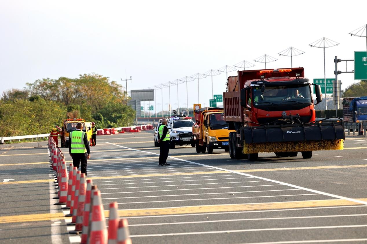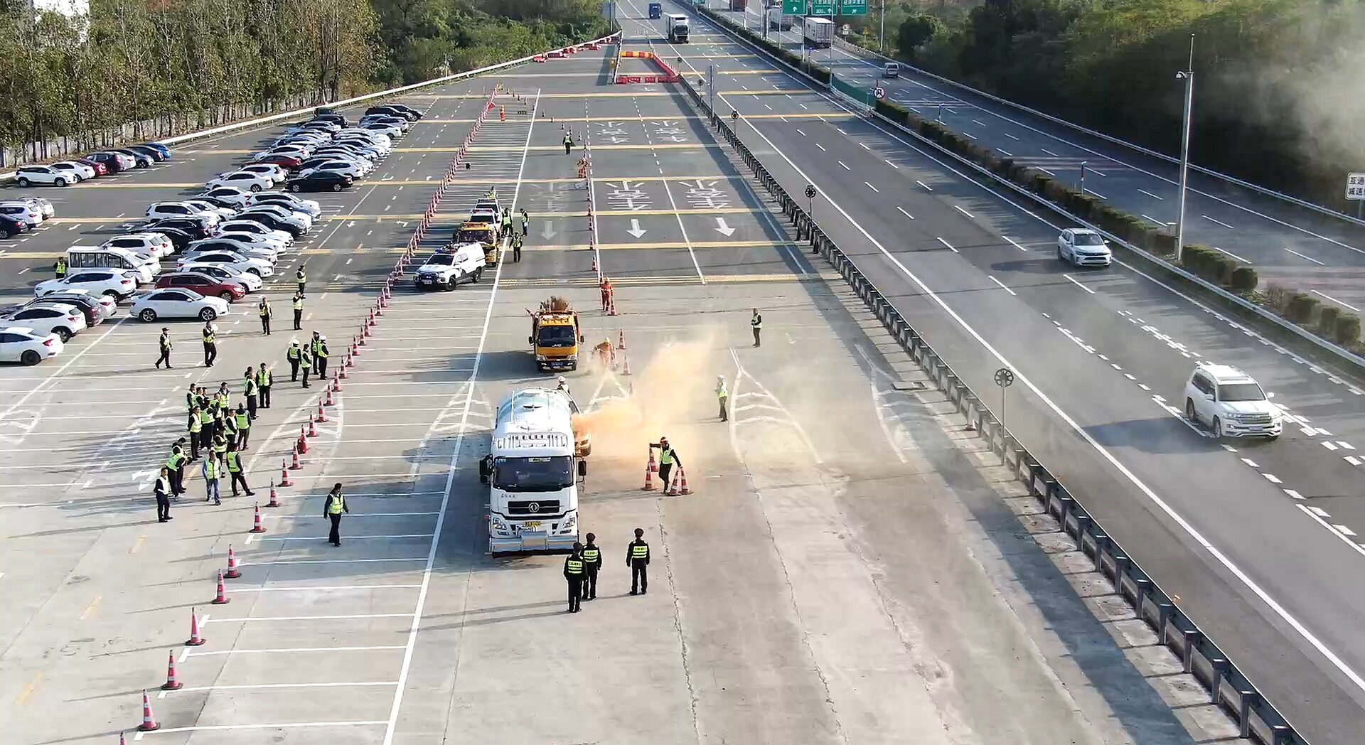 ? ? ? 為深入貫徹集團(tuán)公司安全生產(chǎn)緊急會議精神,積極響應(yīng)贛北地區(qū)高速公路惡劣天氣應(yīng)急管控聯(lián)勤聯(lián)動會議要求,進(jìn)一步提高惡劣天氣下突發(fā)事件應(yīng)急處置能力,11月21日,九江二橋公司聯(lián)合高速交警直屬二支隊一大隊、交通綜合執(zhí)法局二支隊二大隊、清障救援單位、養(yǎng)護(hù)單位、檢測單位,開展惡劣天氣交通事故應(yīng)急演練活動。