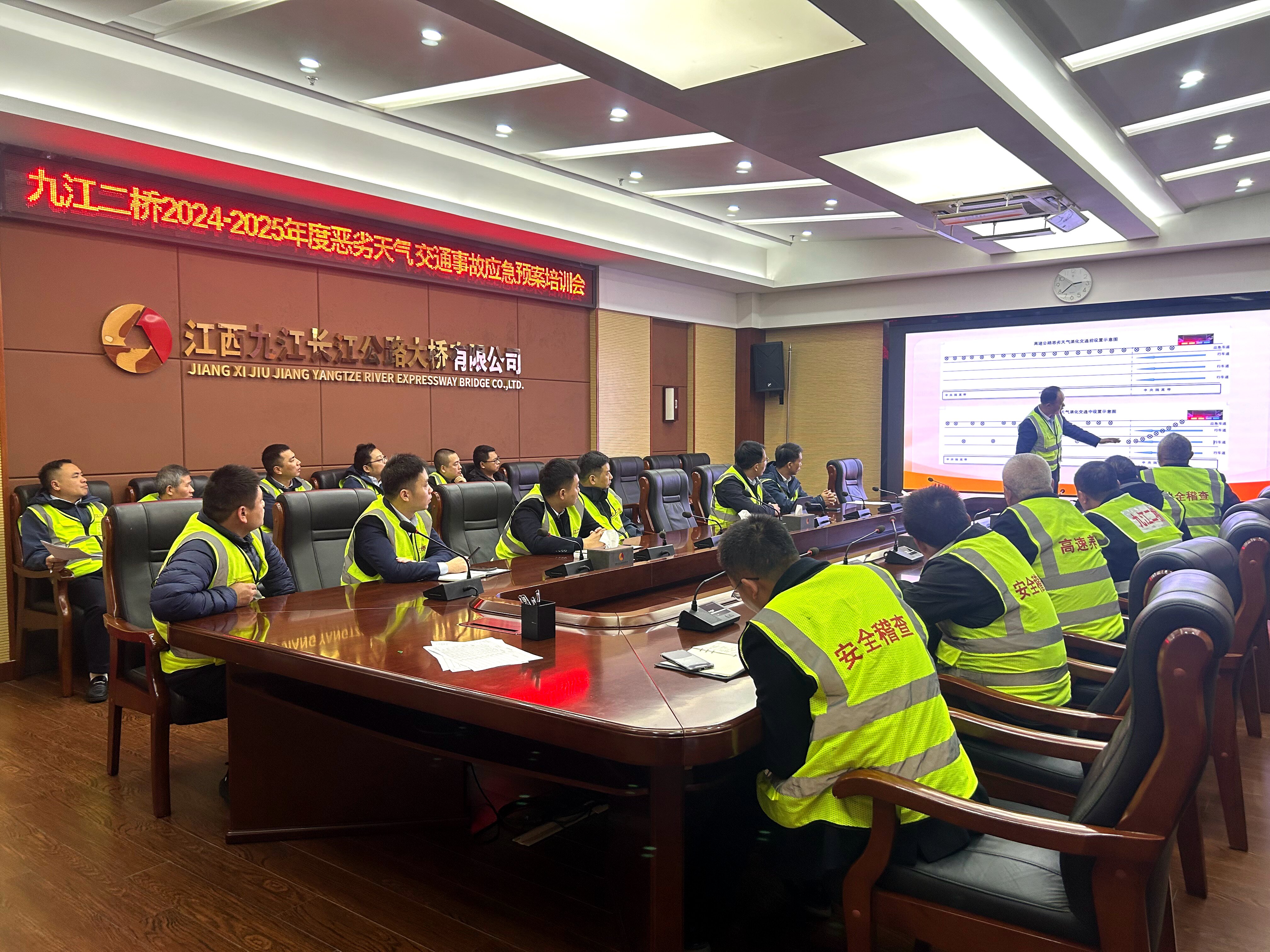 ? ? ? 演練籌備階段,九江二橋公司高度重視,精心組織。公司首先召開了培訓(xùn)會議,會上詳細(xì)宣讀了《2024-2025年度抗冰雪方案》及《惡劣天氣交通事故應(yīng)急演練方案》,并對全體應(yīng)急救援隊伍成員進(jìn)行了系統(tǒng)的安全教育培訓(xùn),強(qiáng)調(diào)在應(yīng)急救援過程中的安全注意事項(xiàng)。